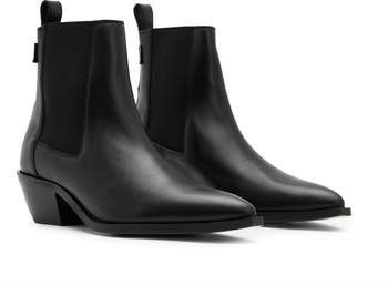 A pointy toe plays up the modern attitude of a block-heel Chelsea boot that's ready to elevate any look.