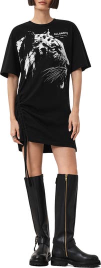 A fierce tiger graphic sits with the brand's iconic logo at the front of this all-cotton T-shirt dress shaped by a drawstring design at the hem.