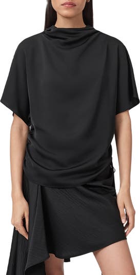 Elbow-length dolman sleeves bring a relaxed fit and fluttering movement to this boxy top shaped by rippled side ruching.