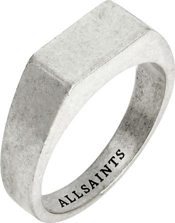 Sharp, angular edges and a brushed antique finish amp up the industrial aesthetic of this flat-top signet ring handcrafted from sterling silver.