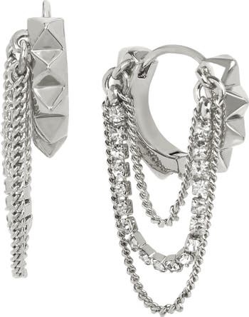 Layers of chains and glinting cubic zirconia add an edge to huggie hoop earrings detailed with signature pyramid studs.