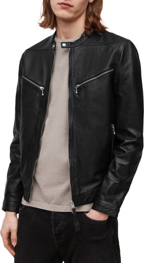 Supple lambskin leather elevates a moto-style jacket with indelible appeal.