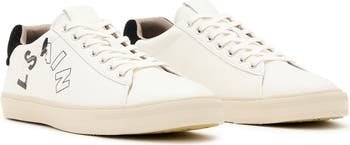 A contrast counter is highlighted in velvety suede on this leather low-top sneaker branded with an abbreviated Tierra logo.