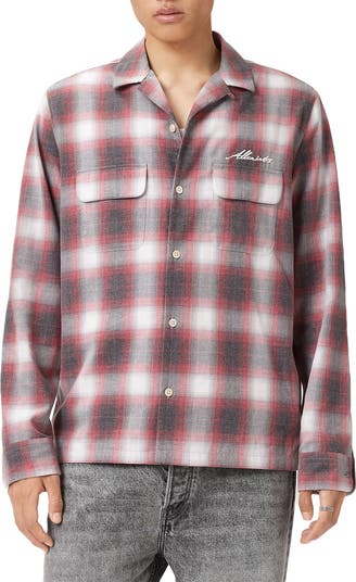 A hazy contemporary plaid and oversized embrodiered graphic look right for the season in this button-up shirt made from a comforting cotton-kissed blend.