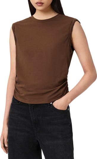 Rippled side ruching shapes this stretchy cotton-modal tank top that's ideal for a laid-back weekend look.