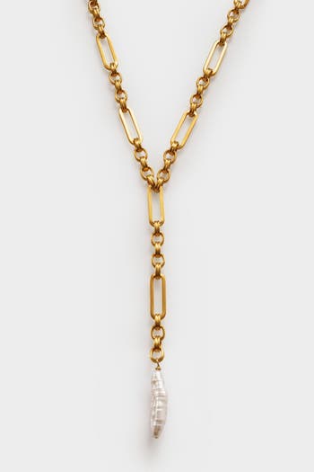 The Allure Pearl Lariat Necklace is made from durable 18K Gold PVD coating, making it certified waterproof, sweat-proof, and life-proof. Featuring an elegant link chain and beautiful freshwater pearls, adding a touch of sophistication to any ensemble. Presented in a reusable suedette pouch, it's ideal for gifting or taking with you on the go.