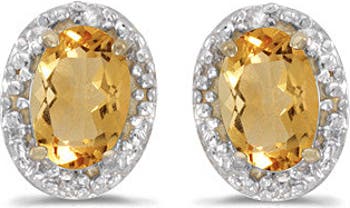 - These women's diamond & citrine earrings feature 2 oval natural citrines accented by round diamonds in a halo fashion.