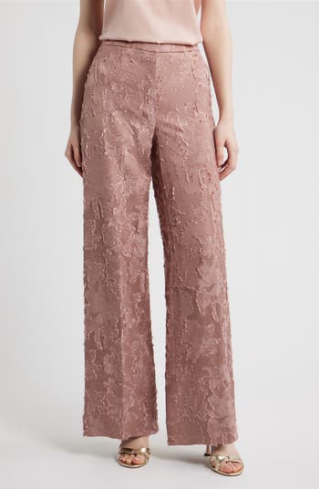 Tonal blooms texture rosy pants that are just right for looks both fun and fancy.