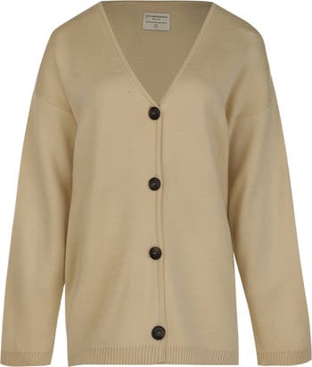 A timeless essential designed for effortless style and comfort. This soft knit cardigan features a relaxed fit, deep V-neckline, and front button closure. It offers lightweight warmth perfect for layering year-round. Its minimalist silhouette and neutral tone make it an everyday staple that pairs beautifully with jeans, skirts, or tailored trouser