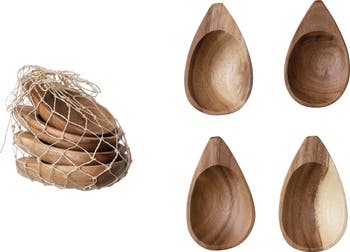 - This boho-inspired set of 4 acacia wood trays showcases abstract almond silhouettes
