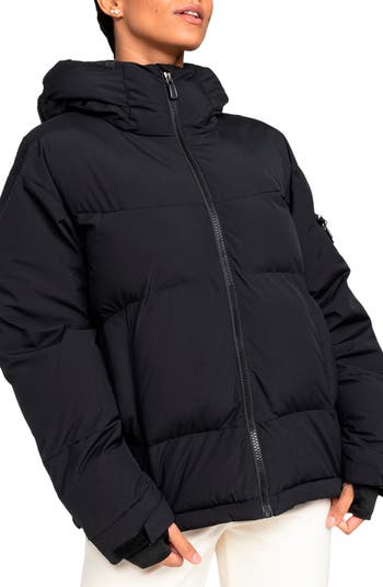 Slay the slopes all day in a hooded puffer jacket designed for the best runs ever. Ski-friendly features include a removable powder skirt, a sleeve pass pocket and an internal pocket to stow your ski goggles.
