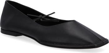 A center seam and square toe add a subtle contemporary twist to this minimalist ballet flat rendered in supple leather and finished with dainty ties.