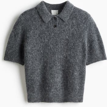 Polo shirt in a soft knit containing alpaca and wool. Collar, button placket and short sleeves. Ribbing at the cuffs and hem.