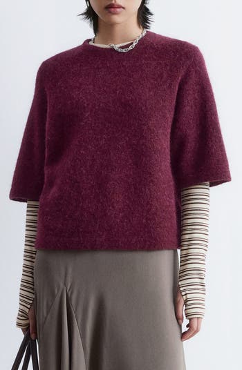 A fuzzy alpaca-and-wool blend brings touchably soft texture to this staple boxy sweater framed by elbow-length sleeves.