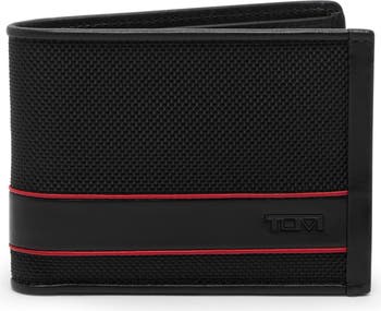 Keep your cards and cash secure in this nylon and leather bifold wallet featuring contrasting brand accents for a standout accessory.