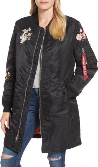 Vibrant floral embroidery and a brand-signature "Remove Before Flight" tag puts a contemporary finish on an oversized quilted bomber that's anything but basic.