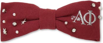 Lele Sadoughi is a proud partner of the National Panhellenic Conference. Crafted in collaboration with 12 of the NPC member organizations, each piece features official Greek letters, crests, colors and symbols. The Riley Bow - perfectly curved to hug your up-do or ponytail for a sporty, chic look.