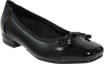 A dainty bow highlights the glossy patent toe of this versatile and comfortable flat complete with a cushy, arch-supporting insole.