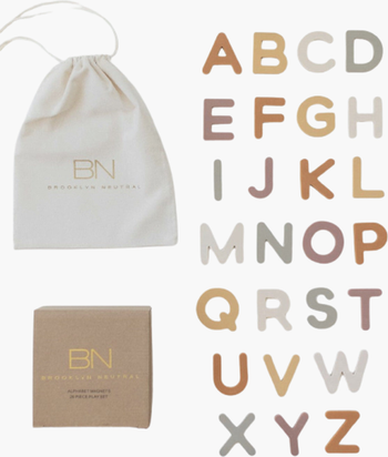 A modern twist on classic fridge magnets, this 26-piece set is crafted from soft silicone in muted tones that fit seamlessly into any space. Designed with little learners in mind, the pieces are gentle on small hands and neatly pack away when playtime is done.