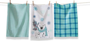 Alpine Glow Bear Aqua Blue Dishtowel Set of 3 Cotton Towels
