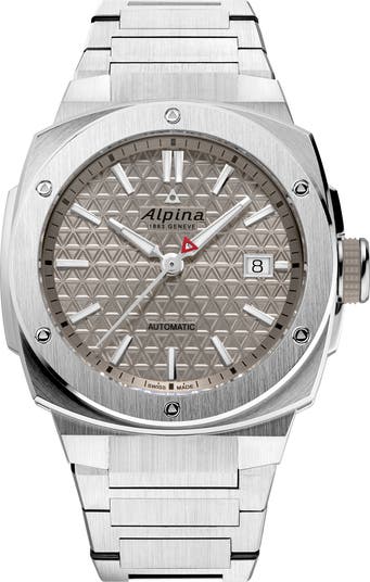 With a water resistance of 200 meters and impressive 38-hour power reserve, this brushed-bracelet watch was built for exploration. Luminous markers and hands help maintain readability in dark or deep conditions, while a guilloché dial offers aesthetic texture.
