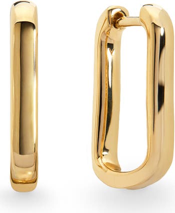 Bring everyday gleam to your ensemble with these elongated huggie hoop earrings handcrafted from 18-karat gold vermeil.