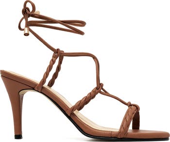 - Design: Elegant lace-up silhouette with intricate braided straps and an open-toe front.