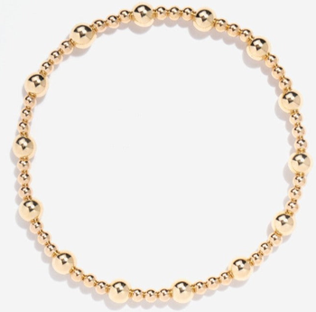 This bracelet is a symphony of shine, with a rhythmic pattern of 3mm and 5mm gold beads that catch the light at every turn. It offers a refined aesthetic with its alternating bead sizes, presenting a versatile piece that can be worn alone for a subtle statement or stacked for a bolder look.