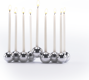Carved from a solid block of aluminum and polished by hand, the Bubble Menorah reflects candlelight and its surroundings, creating a shifting glow across its surface. The clustered spherical form offers a playful take on the traditional Hanukkah menorah while maintaining a clean, sculptural presence on the table. Designed to feel modern but timeless, it’s a piece meant to be brought out year after year.