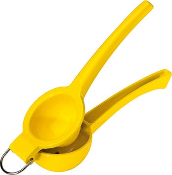Savor the tangy zest of freshly squeezed lemon juice with the Cilio Aluminum Limona Lemon Squeezer. Crafted from durable aluminum in a sunny yellow hue, this squeezer effortlessly extracts every drop of lemon juice, enhancing the flavor of your favorite recipes. Its ergonomic design ensures comfortable handling, making juicing a breeze. Elevate your culinary creations with the essence of freshly squeezed lemon juice.