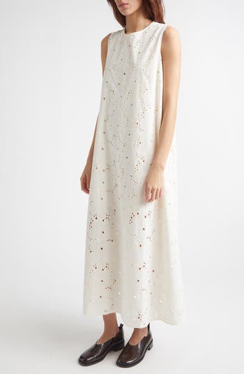 The brand's beloved pop-art blooms are rendered in the sweetest stitchwork to define a swingy maxi cut from cool cotton.