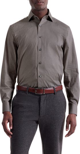 Tailored from crisp, stretch-enhanced cotton, this versatile sport shirt features a pointed collar and a lower hem that stays neatly tucked and looks great if you leave it hanging out. Button the adjustable cuffs for everyday or use your own cuff links to add an elevated-casual finish.