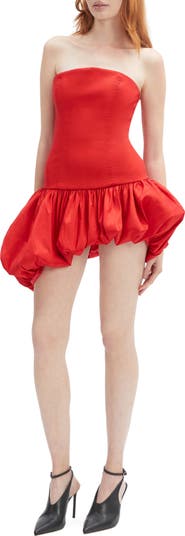 An asymmetric bubble-hem skirt furthers the enticing modern style of this strapless minidress.