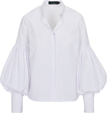 Discover elevated elegance with this long-sleeve dress shirt by No Pise La Grama, designed for women who embrace originality and refined style. Featuring a tailored silhouette with voluminous puff sleeves from the elbow down, this piece redefines classic shirting with a bold, fashion-forward twist.\nThe dramatic sleeve construction adds sculptural movement and a touch of avant-garde flair, while the shirt’s polished lines maintain a timeless sophistication. Perfect for special occasions, modern office looks, or travel wardrobes, it offers versatile styling that transitions effortlessly from day to evening.\nA statement essential within No Pise La Grama’s collection, this shirt captures the balance between classic tailoring and contemporary femininity, making it a must-have for women who seek distinctive high-quality fashion.