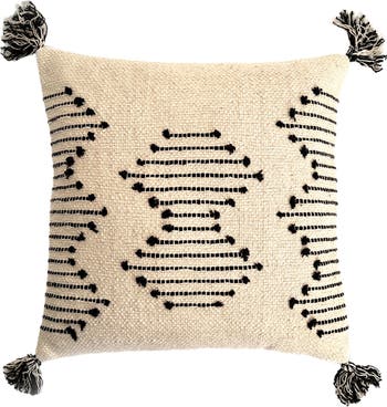 Intricate thread work making up a gorgeous weave and plush tassels on each side are a must add to your home. Available in shades of black and white, it can be paired with just about anything. Handmade by artisans, there might be natural variations making each one truly unique.
