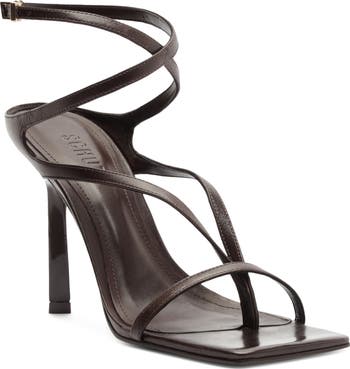 A lofty stiletto heel dials up the modern drama of this strappy leather sandal.