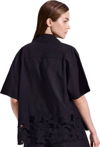 Amalfi Lace Short Sleeve Button Down Shirt Cover-Up