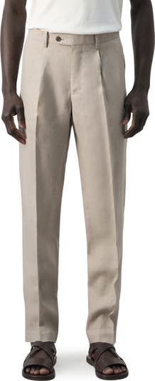 A flat front details these polished pants cut from a lightweight linen and finished with slim-fit legs.