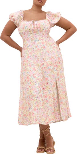 Be the source of romance in the room in an utterly enchanting midi dress showered in flowers and squared at the neckline.