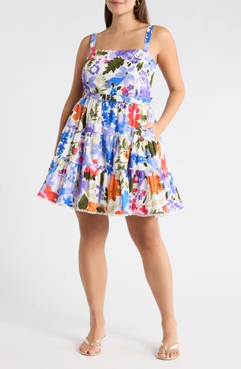 This tiered poplin minidress looks freshly picked with its allover multicolor floral print. Adjustable straps and a belted waist define the silhouette, while a smocked back and invisible side zip keep the fit smooth and easy.