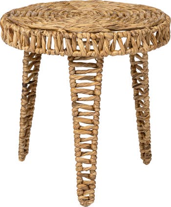 Amara 17" Coastal Bohemian Handwoven Water Hyacinth Round Tripod End Table