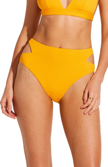 Textured bikini bottoms with flirty waist cutouts are a versatile sunny-day staple that you can mix and match for effortless style.