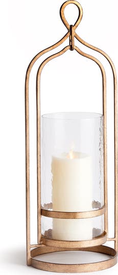 - Antique Gold Hammered Glass Interior use. Clean with damp cloth. Avoid chemicals that may be harmful to finish. Never leave a burning candle unattended. Use only LED flameless candles when specified. 6 x 5.5 x 15