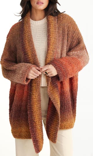 Ready whenever you are, this wool-enriched cardigan keeps layering simple with an open-front design, a longline drape and an eye-catching ombré gradient that feels like wearable color theory.