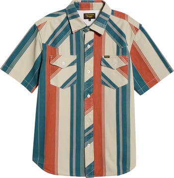 Pointed accents and bright stripes bring bold Western vibes of a shirt made of durable cotton twill that's washed and rumpled like a well-loved favorite. Wear it on its own or layered and open to change up your look every time you go to the rodeo.