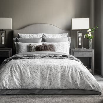 - The thin contours of the classic Damascus ornament adorn the lower part of the duvet cover and gracefully frame the pillowcases on the side