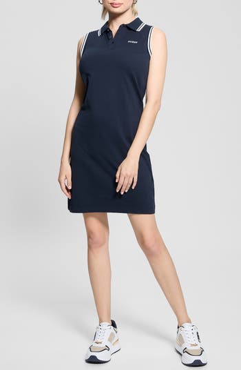 Show your sporty side from workouts to hangouts in a stretch-added organic-cotton-piqué minidress that's accented with zippy striped ribbing.