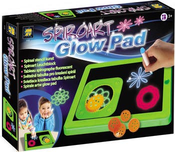 The SpiroArt Glow Pad is crafted for effortless art creation, offering a fun, tidy, and engaging experience. Its tablet-sized, lightweight design makes it ideal for portable activities. This device empowers children to draw and showcase their artwork with ease. Simply erase with a swipe to start anew. Endless creativity awaits with three distinct glow markers and seven unique backgrounds. The specially designed SpiroArt wheels, available in three sizes, enable the creation of intricate and stunning patterns. Every box includes a gentle cloth for easy cleaning and an accessible instruction manual.