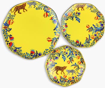 Amazon Rainforest Bone China Plates In Yellow, Set Of Three