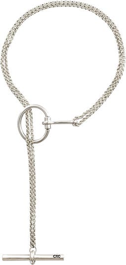 A necklace with the personality of the innovative, with a bead that is a reinvention of the traditional equestrian "bit". The model is produced in metal alloys with silver plating. Model also available with the "bit" in silver. Exclusive CXC design, handcrafted in Spain.